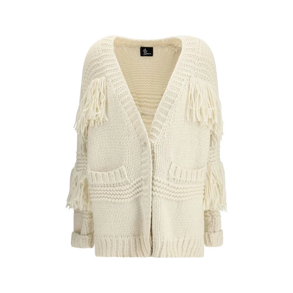 The Tricot Cardigan by Moncler Grenoble reimagines knitwear through a dynamic sense of elegance. The V-neck and button closure outline a timeless shape, enhanced by fringe accents and a logo patch on the sleeve. The wide ribbed trims and back fringe band add movement and personality to a piece that fuses comfort with contemporary alpine style.