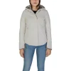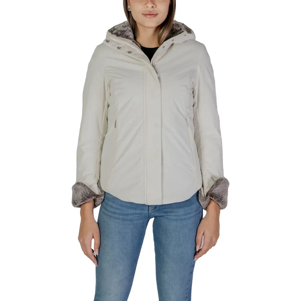 The Suns Roberta Fur GBS53019D women’s jacket perfectly combines contemporary style and everyday comfort. Made from 100% polyester, it provides effective protection against wind and cold while remaining lightweight. The design features a slightly fitted feminine silhouette, integrated hood, and turned-up cuffs finished with soft faux fur fabric. The front closure with snap buttons and hidden zip ensures practicality and a clean look. Side zip pockets add functionality, while refined details make this jacket ideal for facing colder days with elegance, whether in the city or during leisure time.