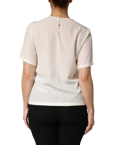 top exudes timeless elegance with its soft cream hue and luxurious silk fabric. Designed with short sleeves and refined silhouette detailing, it offers a graceful and feminine fit. Perfect for pairing with tailored pieces or skirts for a polished, sophisticated look.