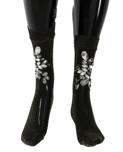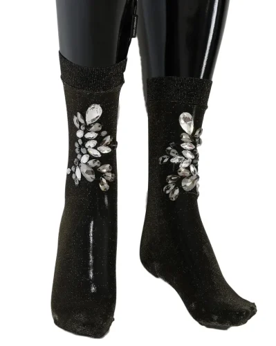 Gorgeous brand new, 100% Authentic Dolce & Gabbana black stretch mid calf high floral crystal embellished stockings socks