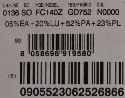 Material: 52% Nylon, 5% Elastane, 23% Polyester, 20% Metal