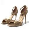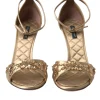 Gold Satin Ankle Strap Crystal Sandals Shoes