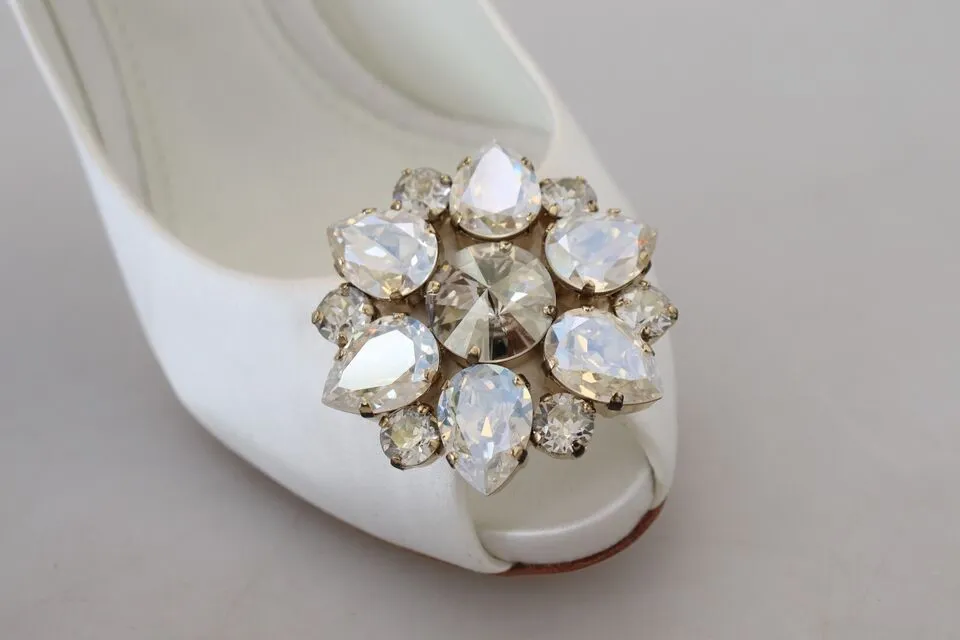 White Crystals Peep Toe Heel Satin Pumps Original price was: $1,069.00.Current price is: $679.00.