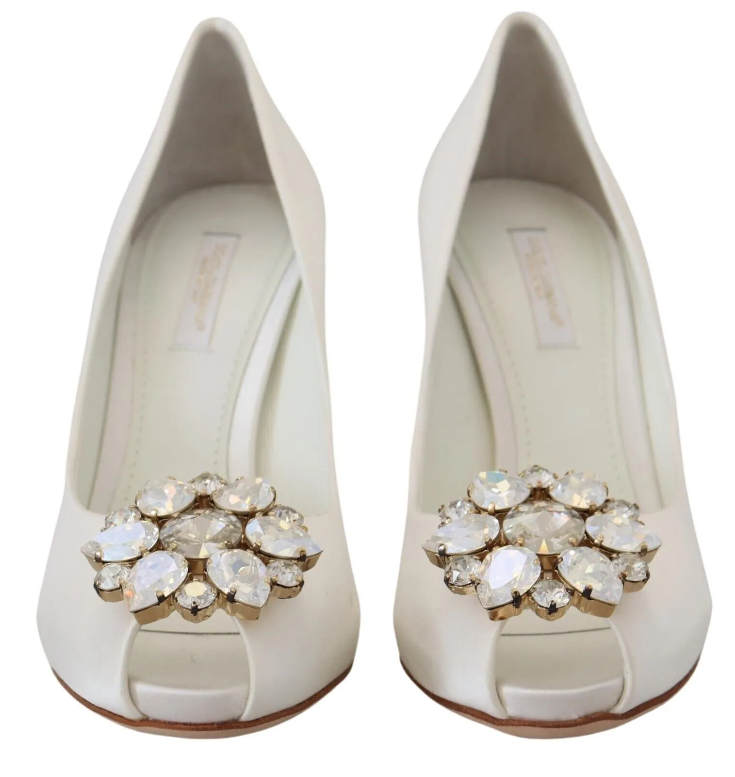 Gorgeous brand new with tags, 100% Authentic Dolce & Gabbana White Crystals Peep Toe Heels Pumps