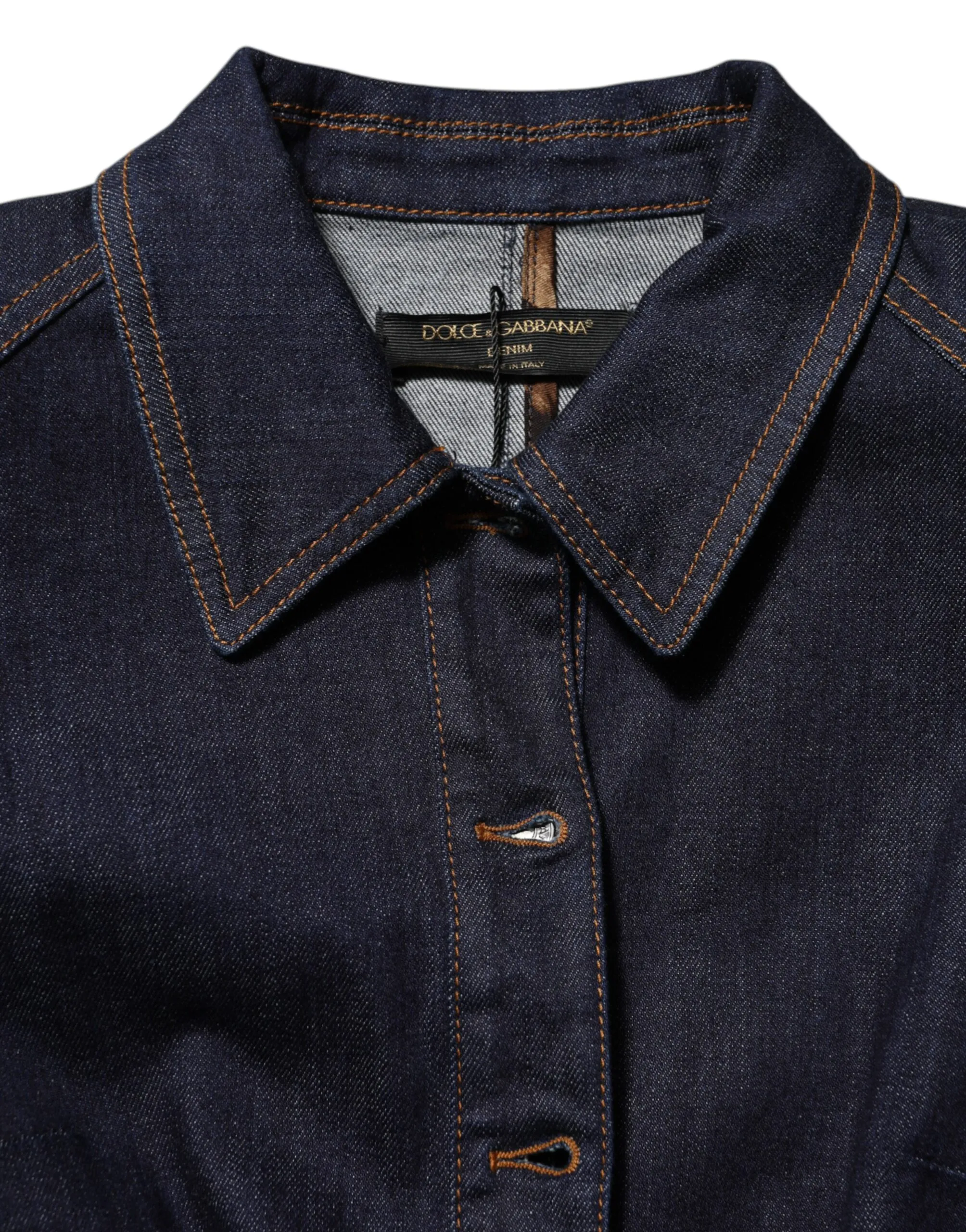 Gorgeous brand new with tags, 100% Authentic Dolce & Gabbana coat is crafted from dark blue cotton denim and features a classic collared design for a structured, timeless silhouette. Designed with a tailored fit and clean lines, it blends Italian craftsmanship with effortless streetwear style — perfect for layering over casual outfits or elevated daytime looks.