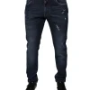 Dark Blue Cotton Logo Skinny Denim Jeans