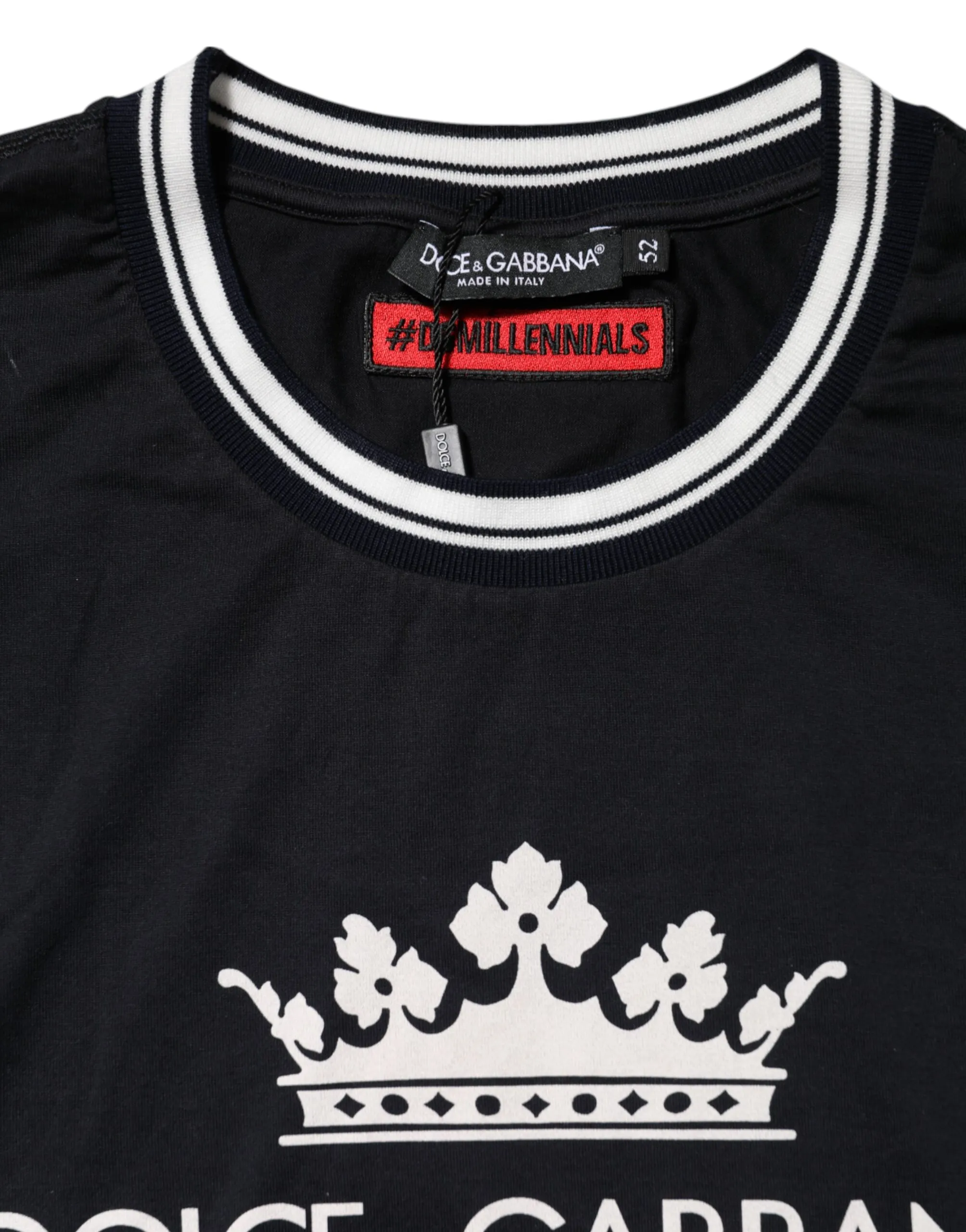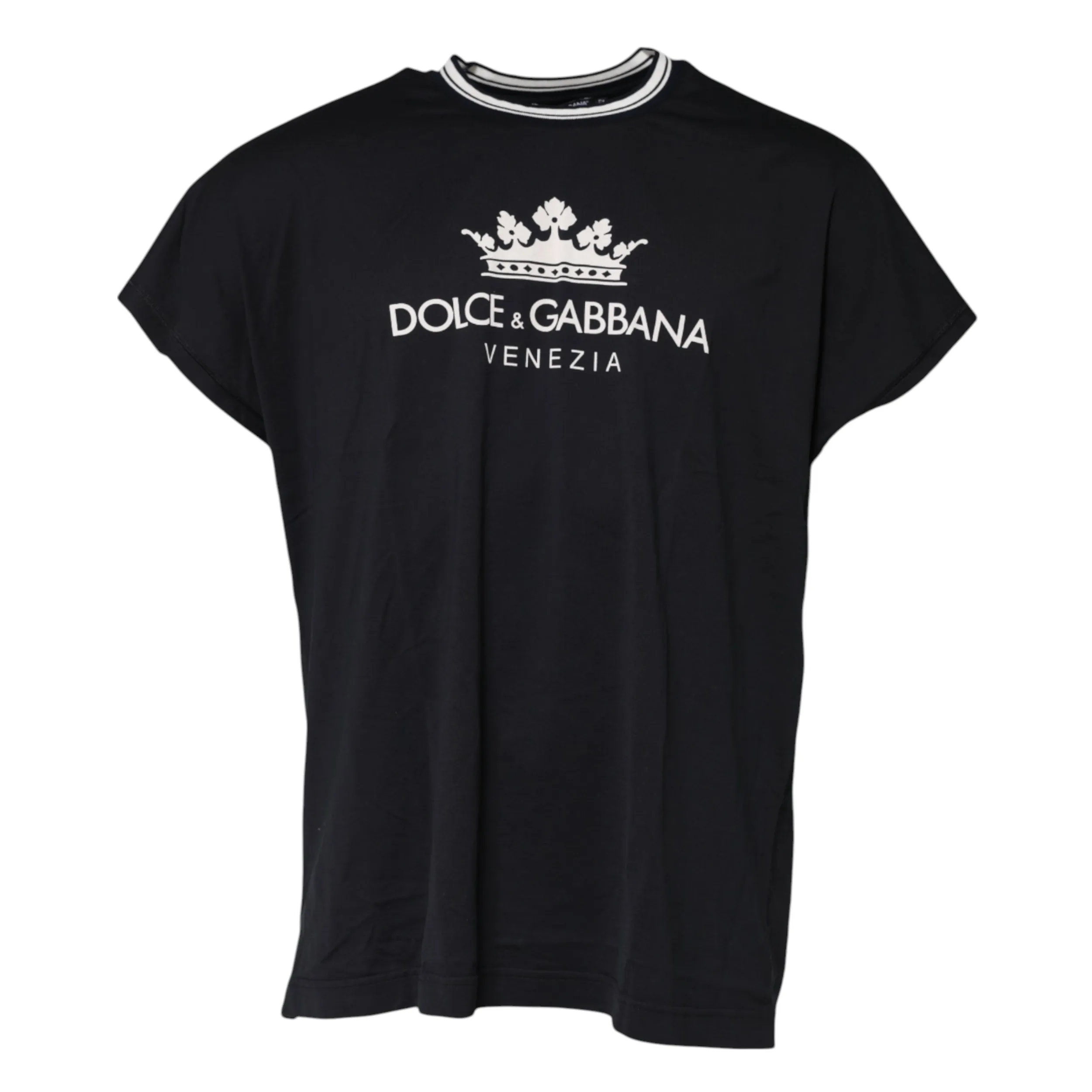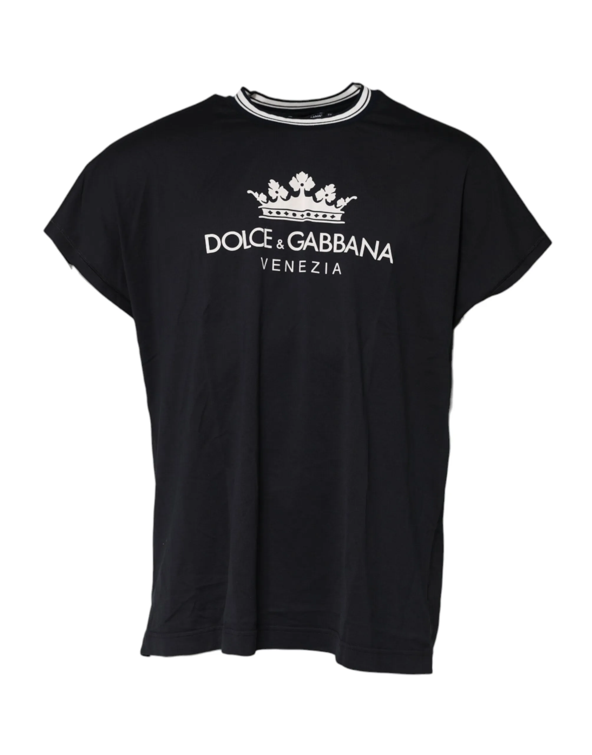 Dark Blue Venezia Crown Cotton Crew Neck T-shirt