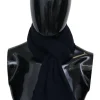 Dark Blue Wool Unisex Neck Wrap Fringes Logo Scarf Original price was: $339.00.Current price is: $269.00.