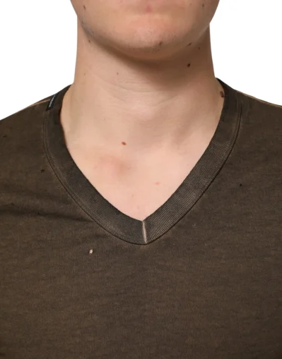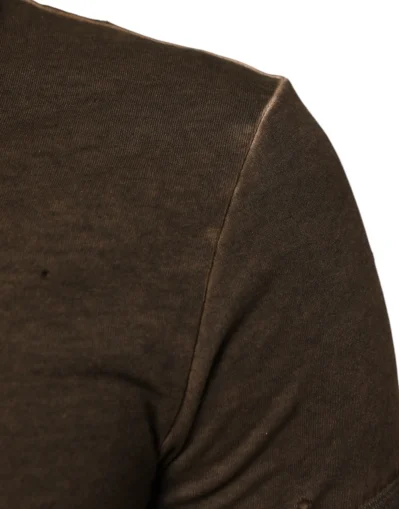 Dark Brown Cotton Tattered Logo Men T-shirt