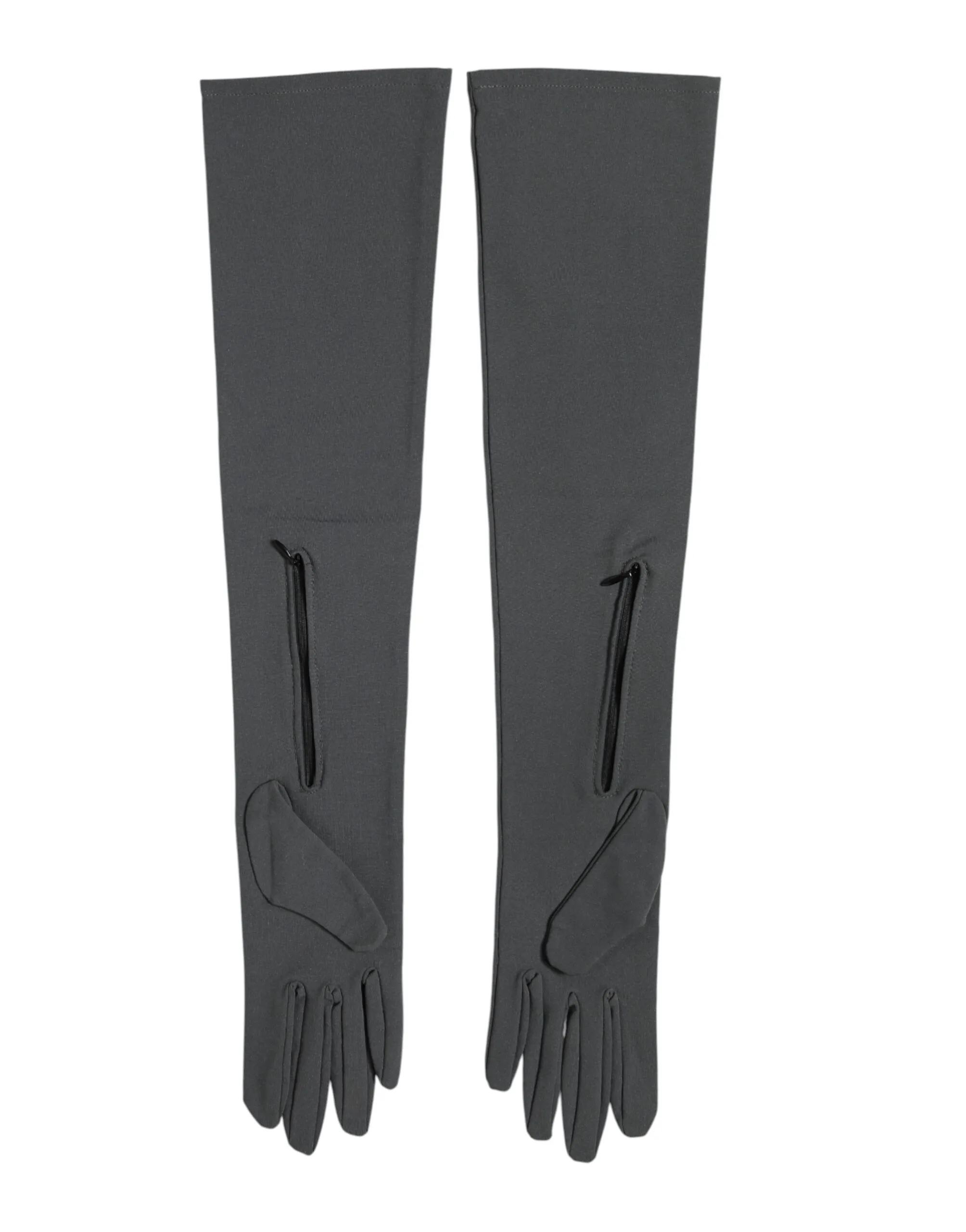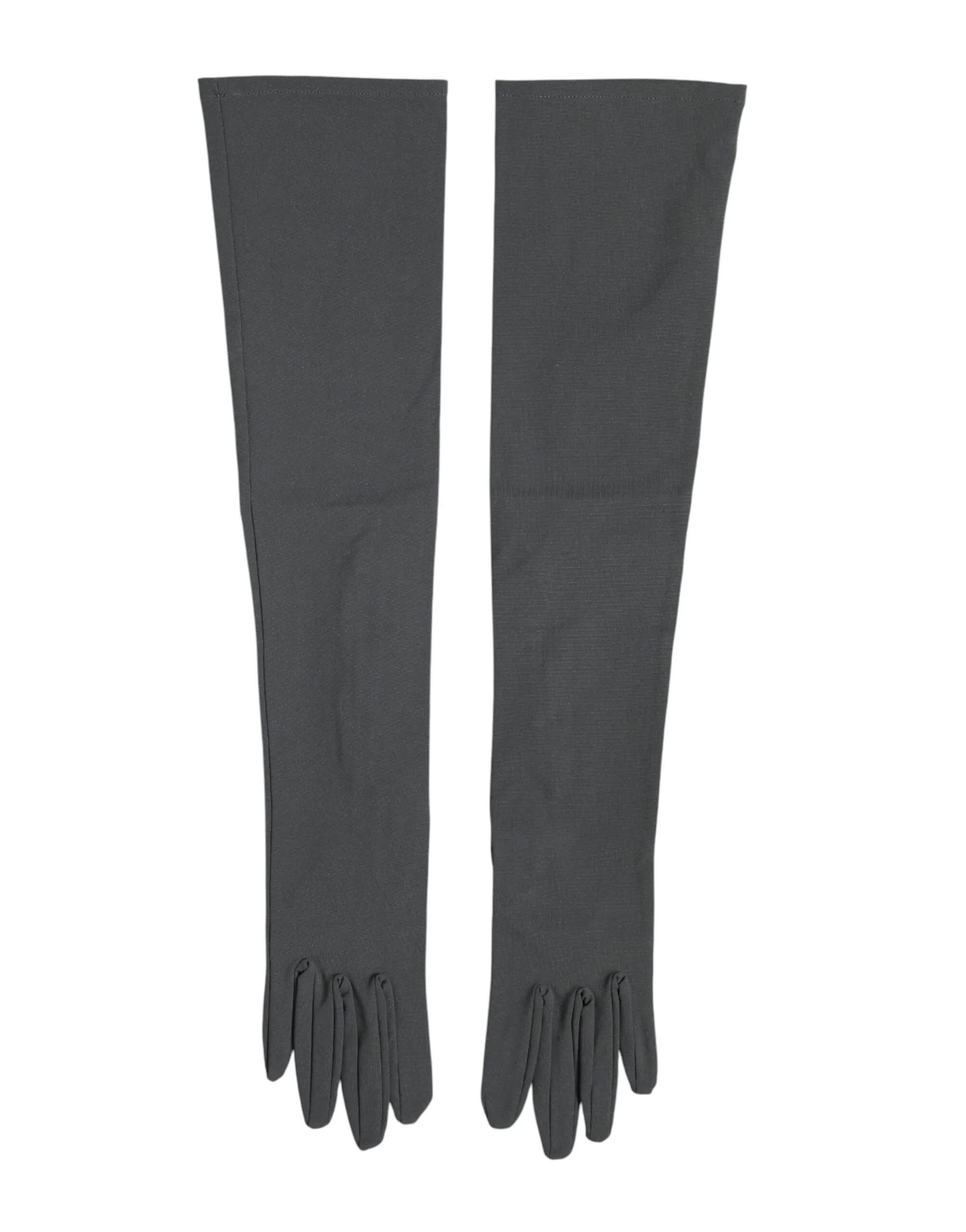 Gray Viscose Elbow Length Mitten — Elegant and refined, these gray elbow-length mittens are crafted from soft viscose for a smooth, comfortable fit. Their sleek design and luxurious texture showcase DOLCE & GABBANA’s signature sophistication, perfect for adding a touch of modern glamor to any ensemble.