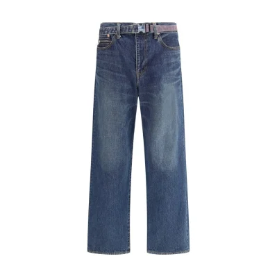 Sacai’s Belted Jeans reinterpret a wardrobe classic with a distinctive twist. The five-pocket style features a wide leg and a front zipper and button closure. Completing the design is a matching denim belt with front fastening, a detail that adds character and stylistic consistency to the garment.