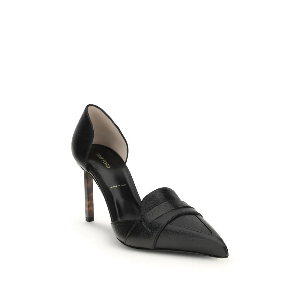The d’Orsay Pumps by Tom Ford are crafted in leather with an elegant pointed-toe design. A side cut-out detail enhances the silhouette, while the tortoiseshell-effect heel adds a refined, distinctive touch. A feminine shoe with strong character.
