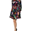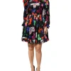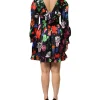 Dress Black Multicolor Floral Ruffle Long Sleeve Mini Dress