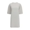 Balenciaga’s dry jersey T-shirt Dress combines essential lines with a novel tailoring construction. Made of dry jersey, it offers a semi-fitted fit: more defined at the front and soft at the back for a dynamic and sophisticated effect. The crew neck and short sleeves complete the design with a minimal and versatile touch.