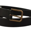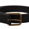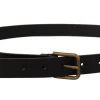 Black Calf Leather Brass Logo Engraved Buckle Belt