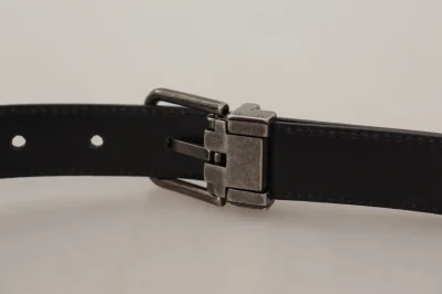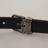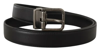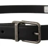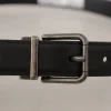 Black Plain Leather Vintage Logo Metal Buckle Belt