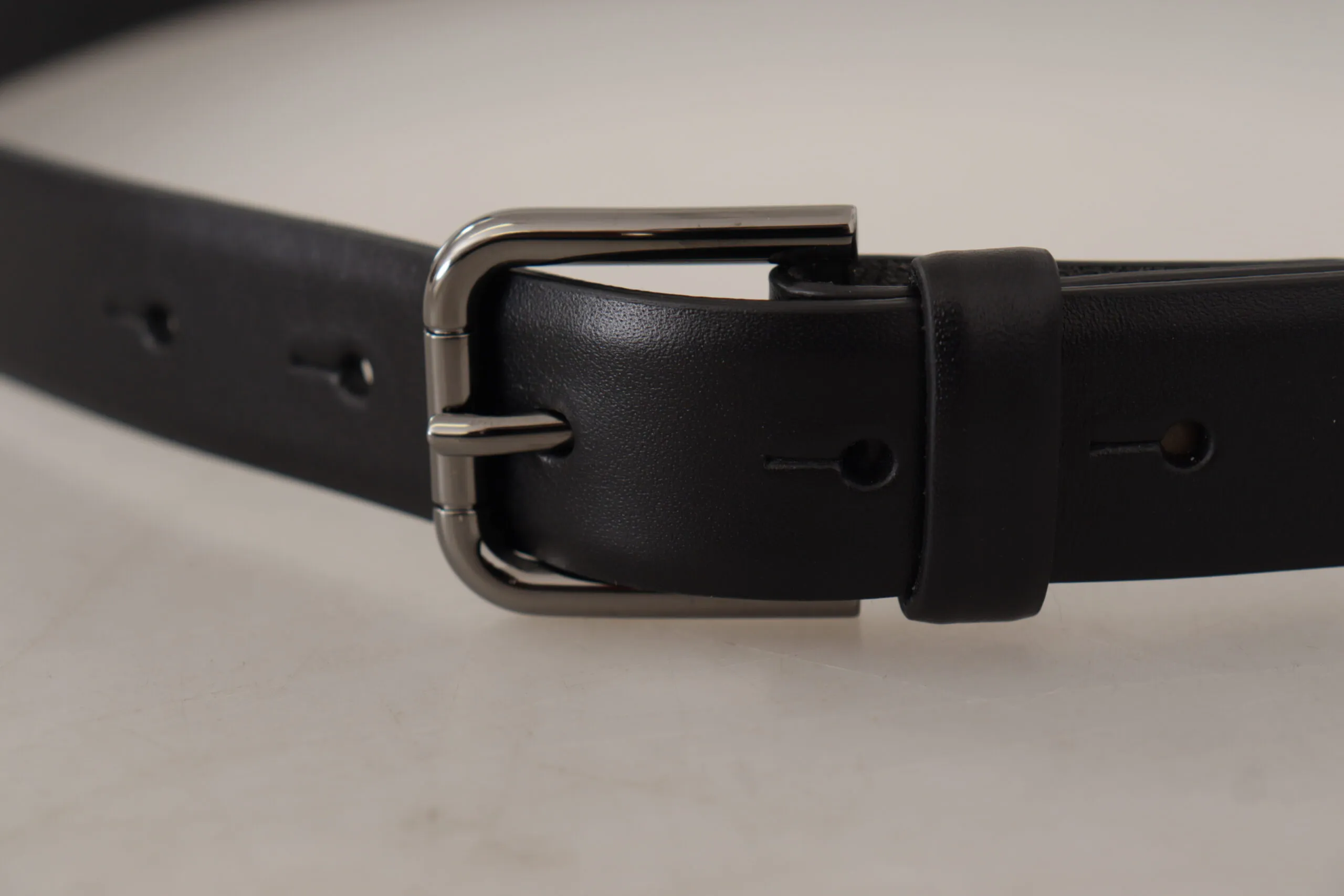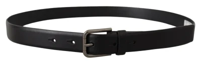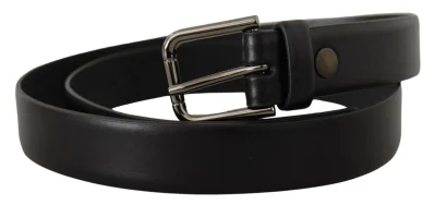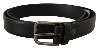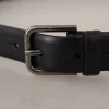 Black Calf Leather Classic Logo Metal Buckle Belt