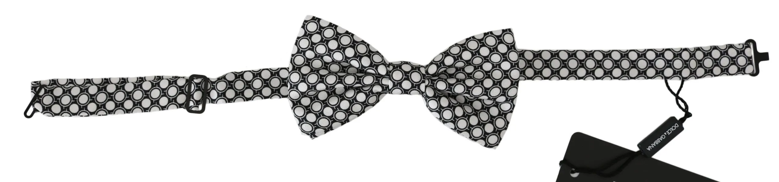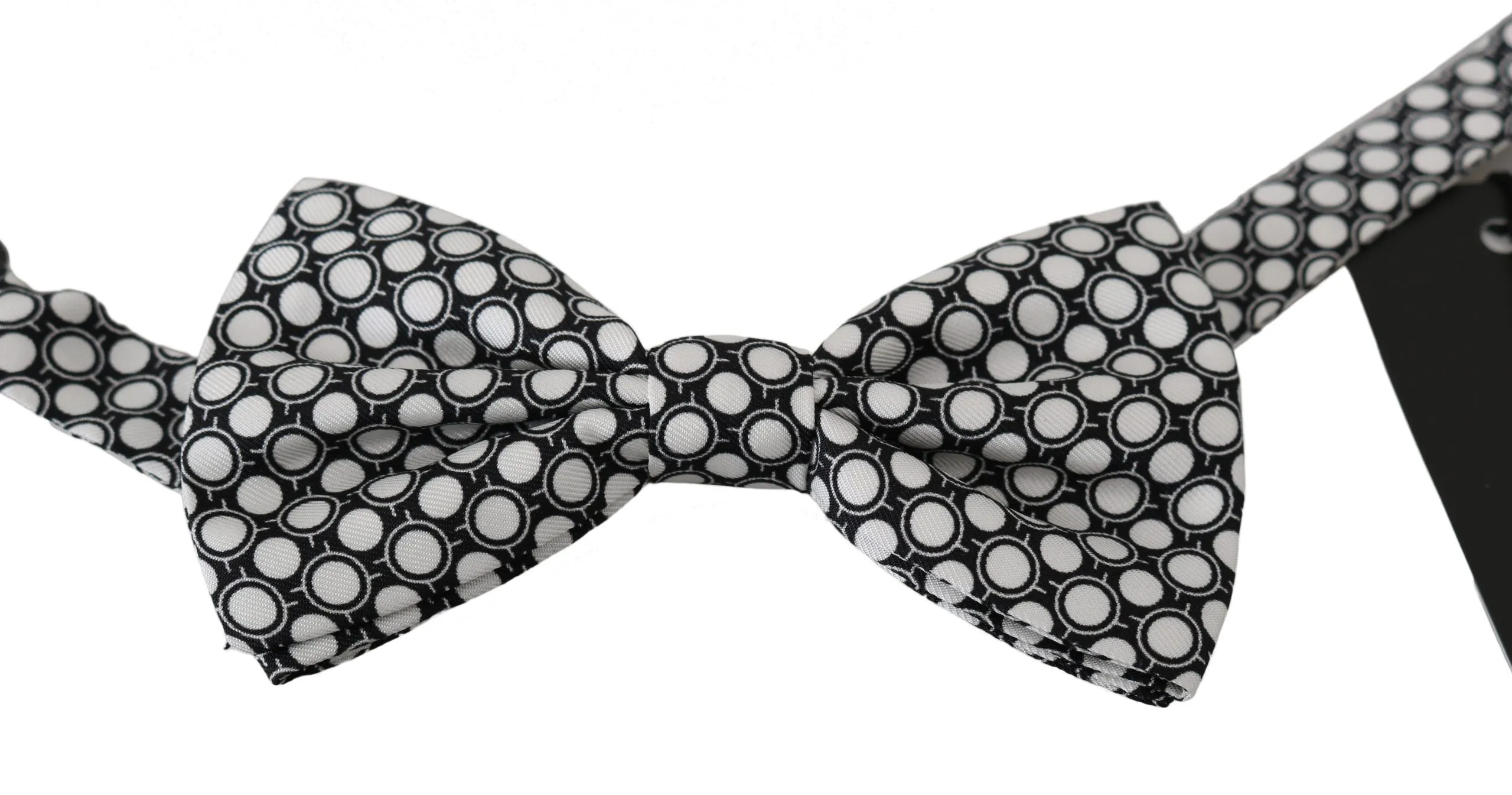 Men Black White Circles Adjustable Neck Papillon Bow Tie