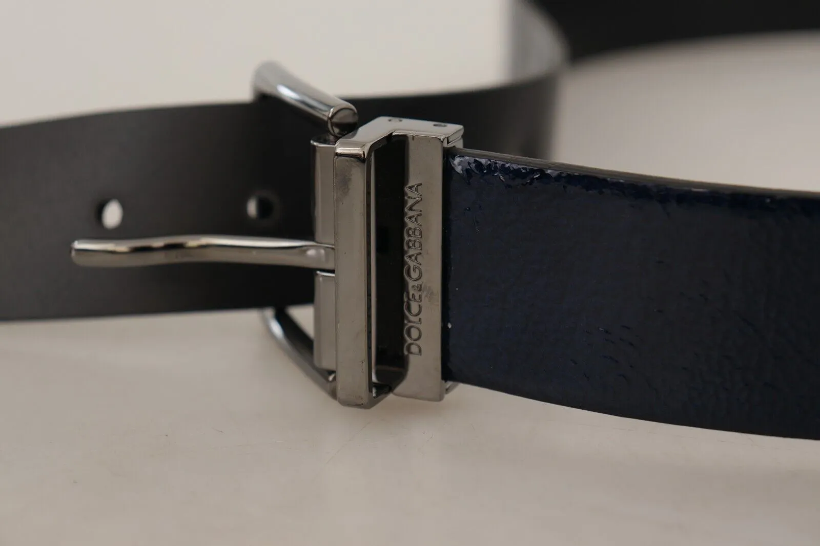 Blue Patent Leather Vernice Silver Logo Buckle Belt