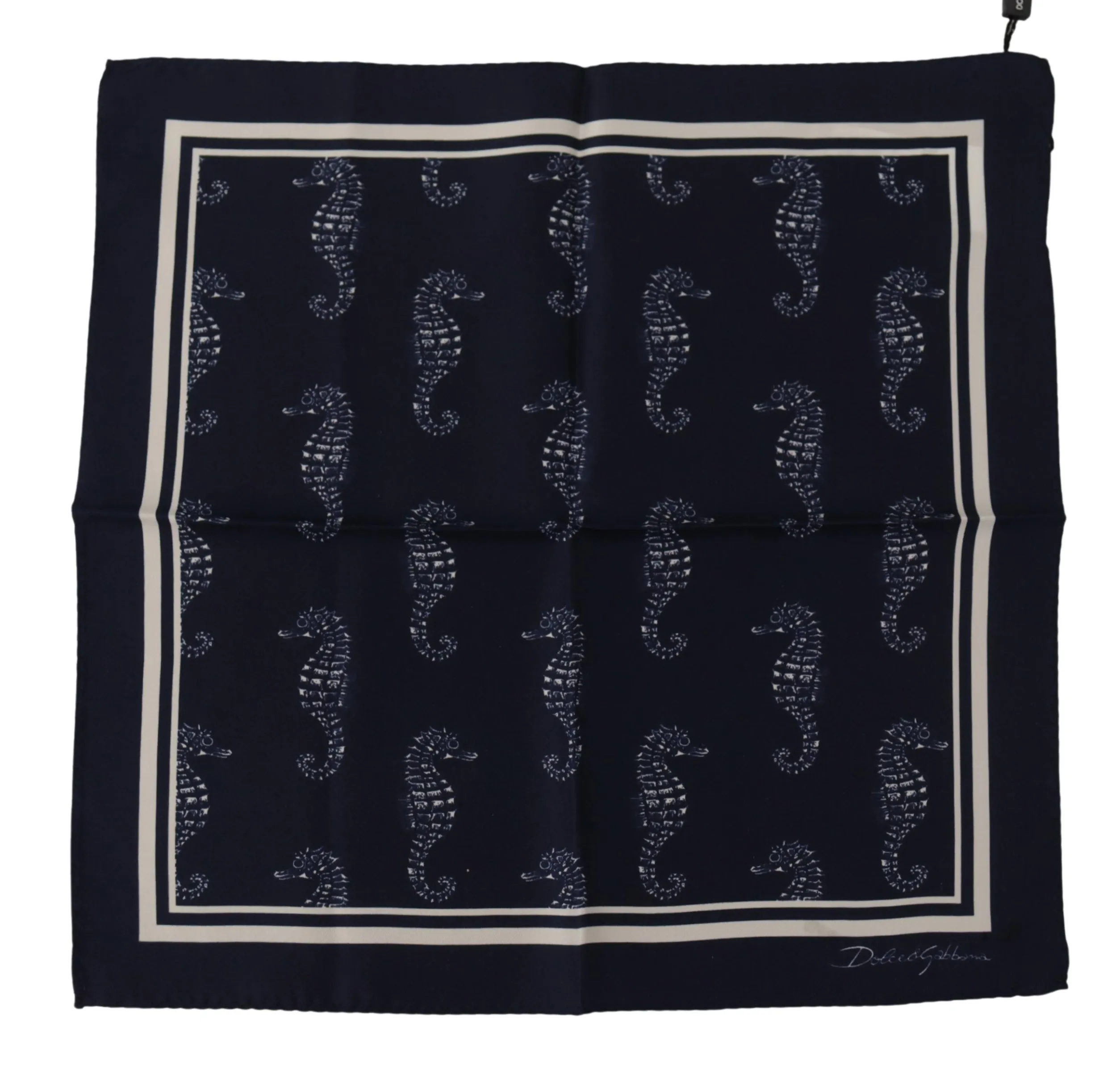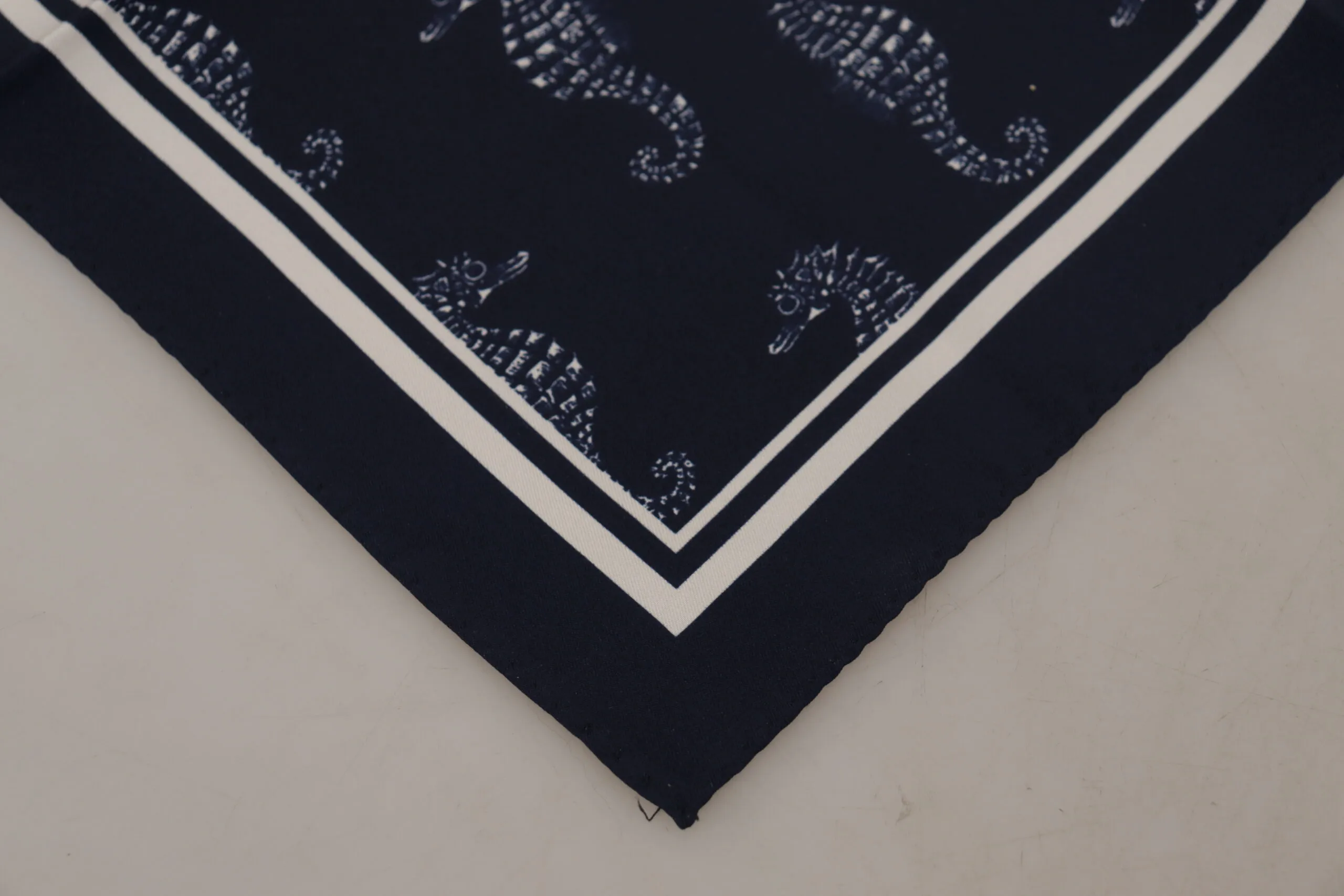 Blue Seahorse DG Printed Square Handkerchief Scarf