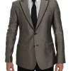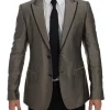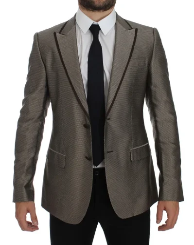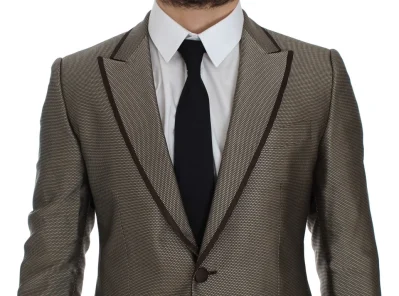 Absolutely stunning, 100% Authentic, brand new with tags Dolce & Gabbana brown patterned silk slim fit two button Blazer jacket. This item comes from the exclusive MainLine Dolce & Gabbana collection.