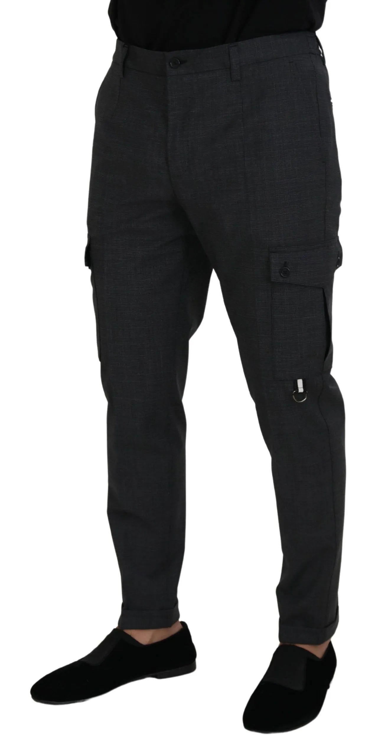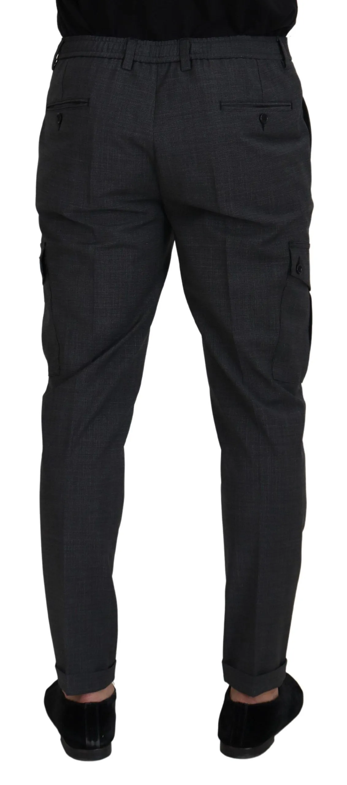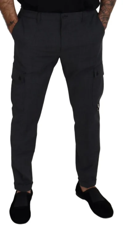 Gray Checked Cargo Trousers Stretch Pants