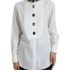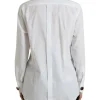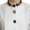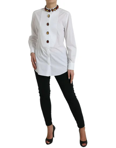 Gorgeous brand new, 100% Authentic Dolce & Gabbana white cotton collared long sleeves top with decorative crystals.