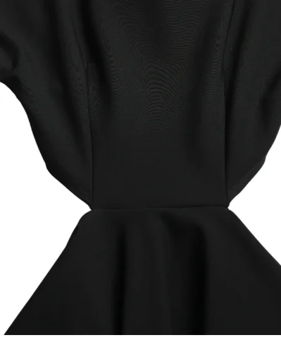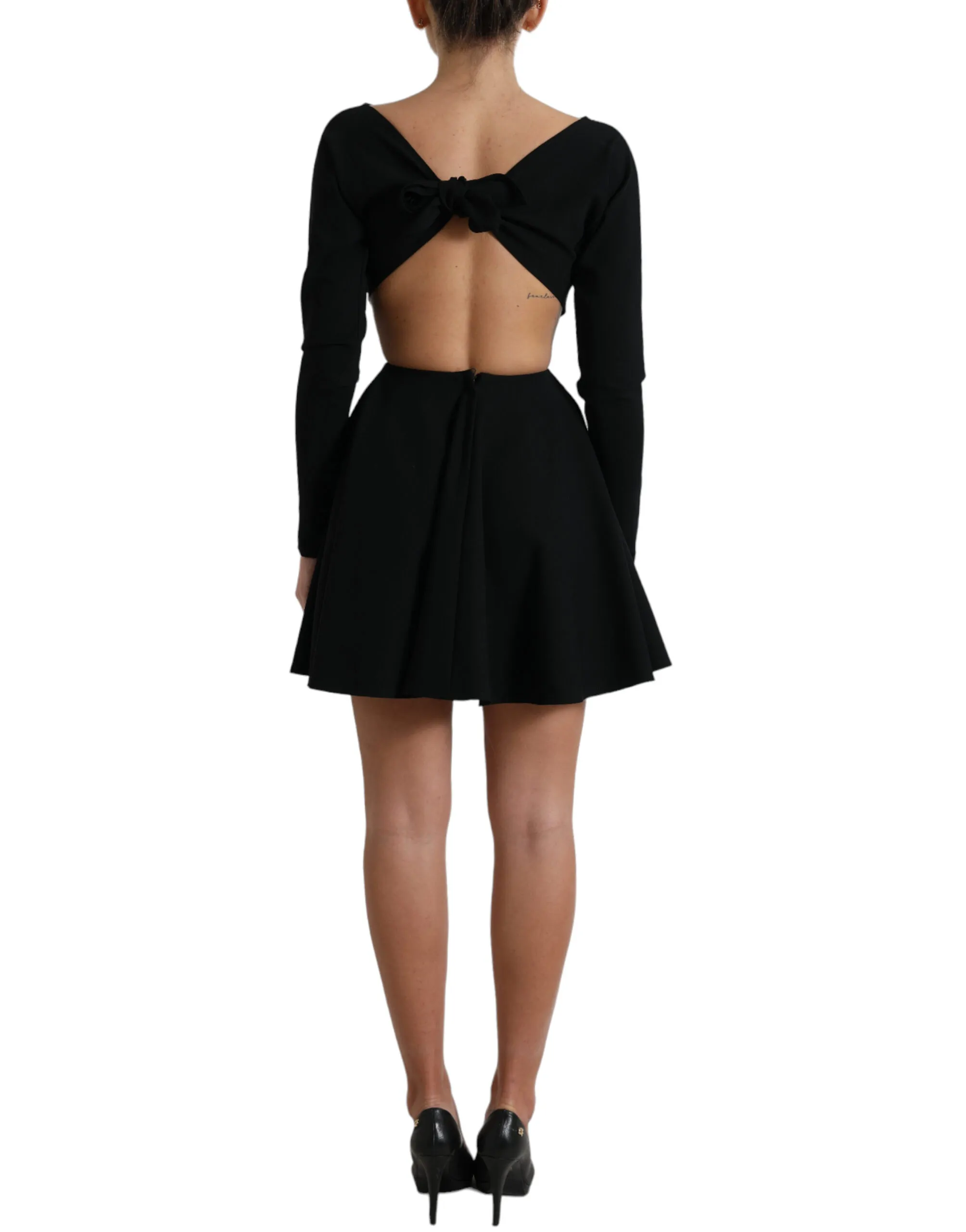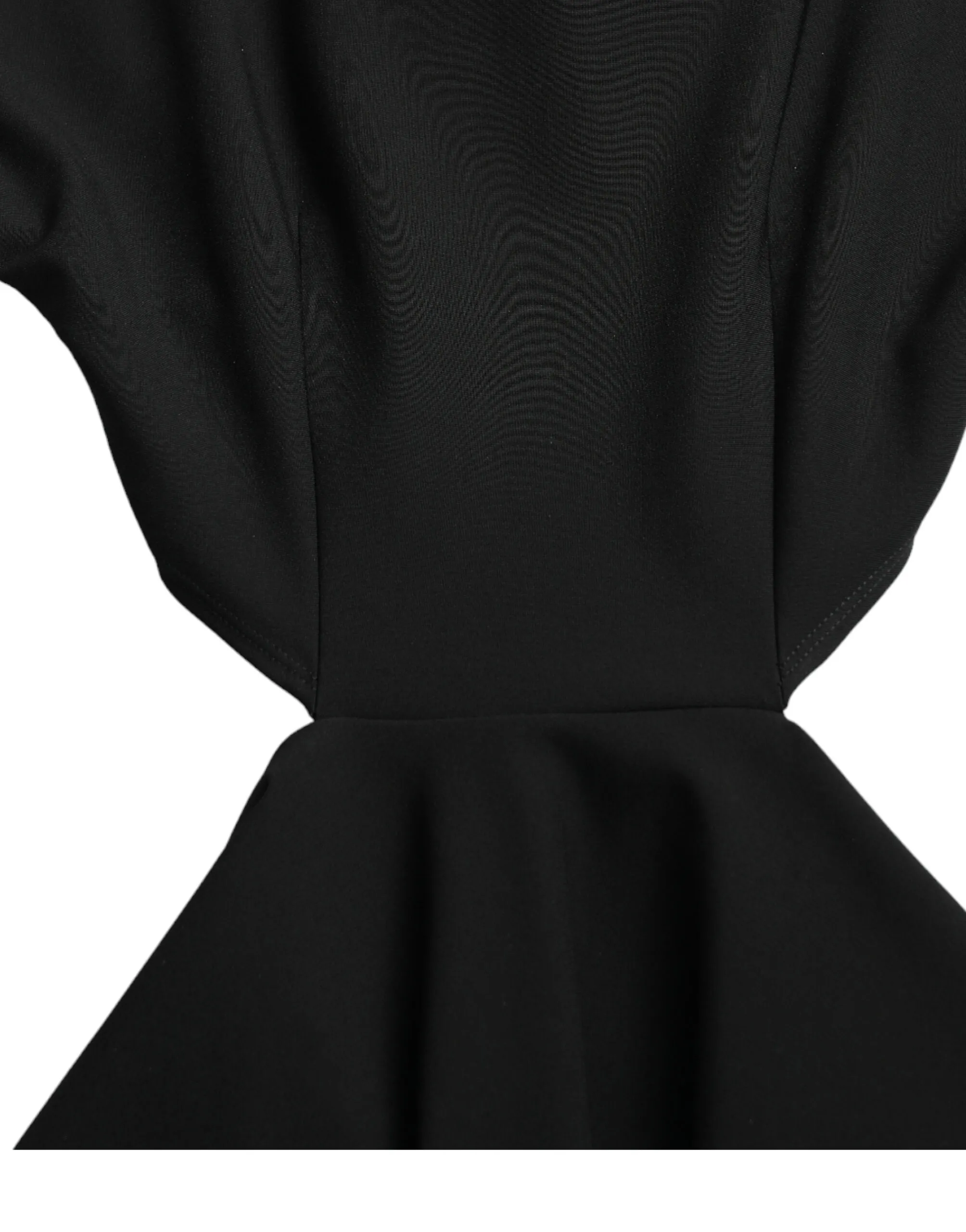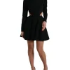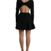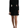 Black Viscose Cut Out A-line Long Sleeves Mini Dress
