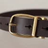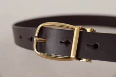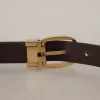 Dark Brown Calf Leather Gold Tone Metal Buckle