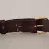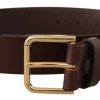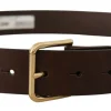 Brown Plain Calf Leather Gold Tone Buckle Belt