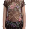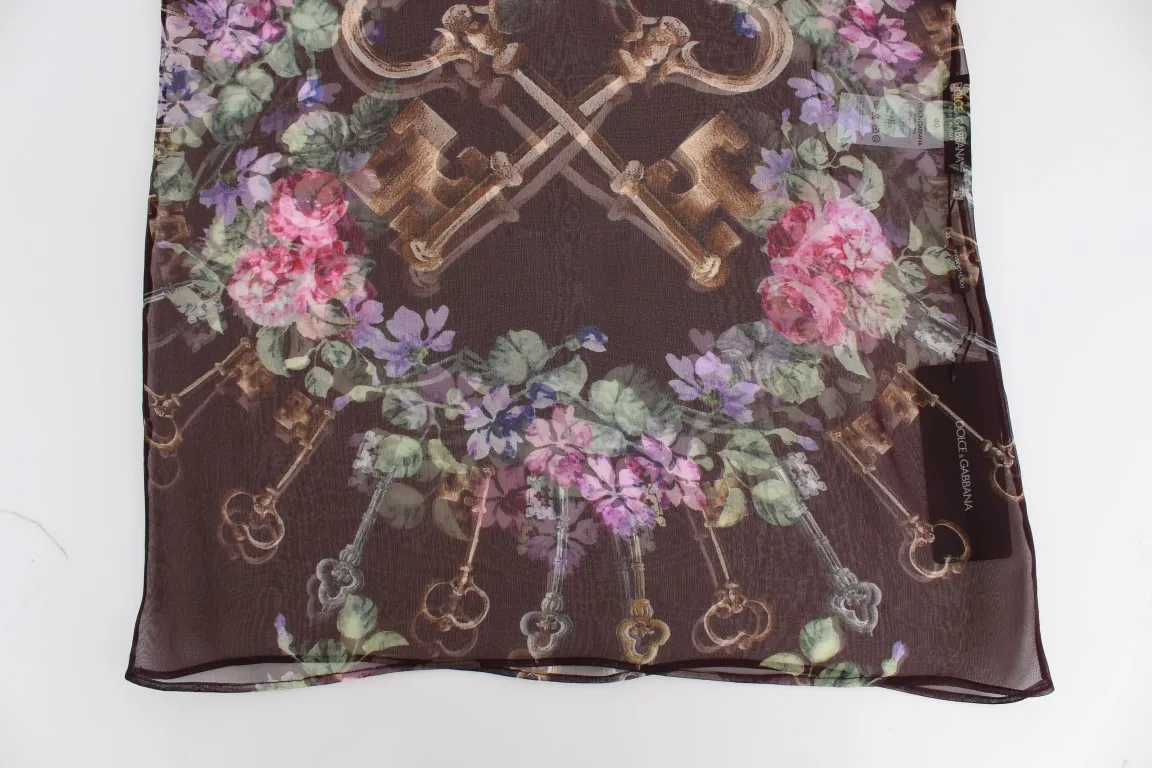 Gorgeous brand new with tags, 100% Authentic DOLCE & GABBANA black silk blouse top with multicolor key and floral print. This item comes from the exclusive MainLine Dolce & Gabbana Collection.