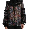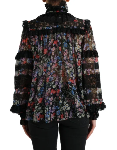 Gorgeous brand new, 100% Authentic Dolce & Gabbana black floral long sleeves blouse top with lace trim.