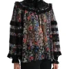 Black Floral Print Long Sleeves Blouse Top