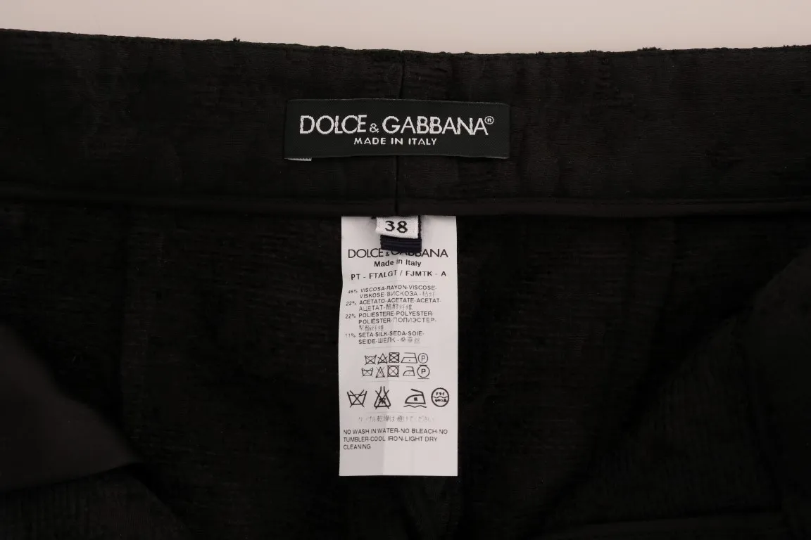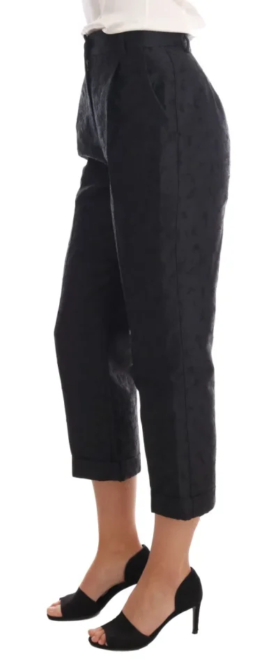 Black Floral Brocade Capri Pants