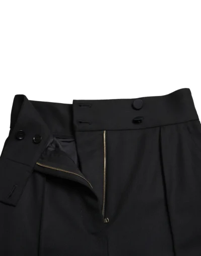 Black Wool High Waist Tapered Pants
