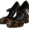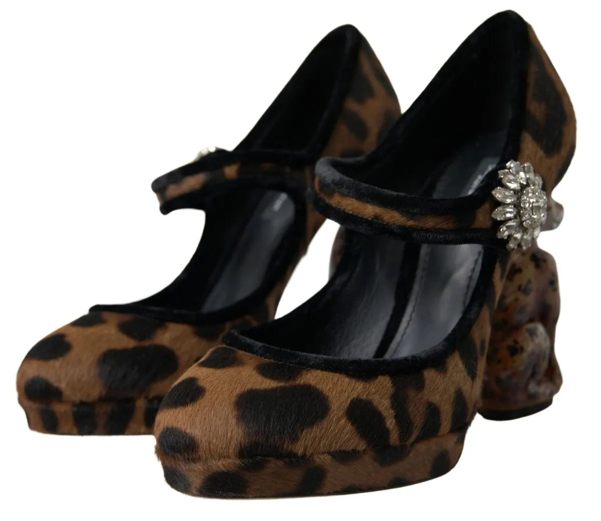 Black Brown Calf Leopard Heel Mary Jane Pump Shoes