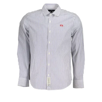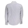 LONG SLEEVED SHIRT, BLUE STRIPED, FRENCH COLLAR, 2 BUTTON CUFFS, BUTTONS, EMBROIDERY, LOGO