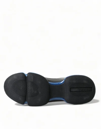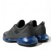 Black Blue Rubber Knit Slip On Low Top Sneakers Shoes