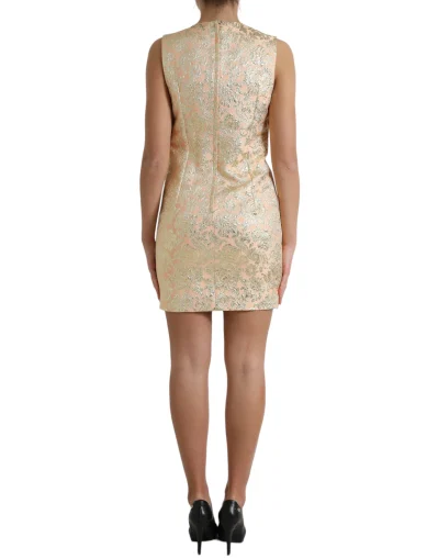 Gorgeous brand new with tags, 100% Authentic Dolce & Gabbana mini dress. Sophisticated lurex jacquard fabric comes in a peach hue to emphasize the bon-ton feel of this understated dress to create timeless, romantic femininity.