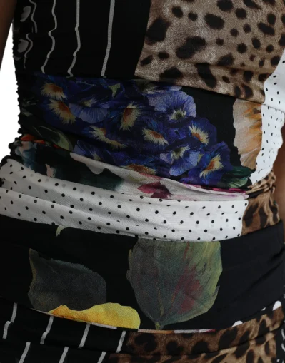 Multicolor Patchwork Midi Floral Leopard Bodycon Dress