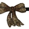 Gold Tone Silk Rhinestone Embellished Women Bowtie