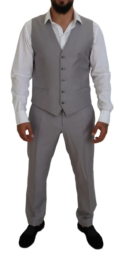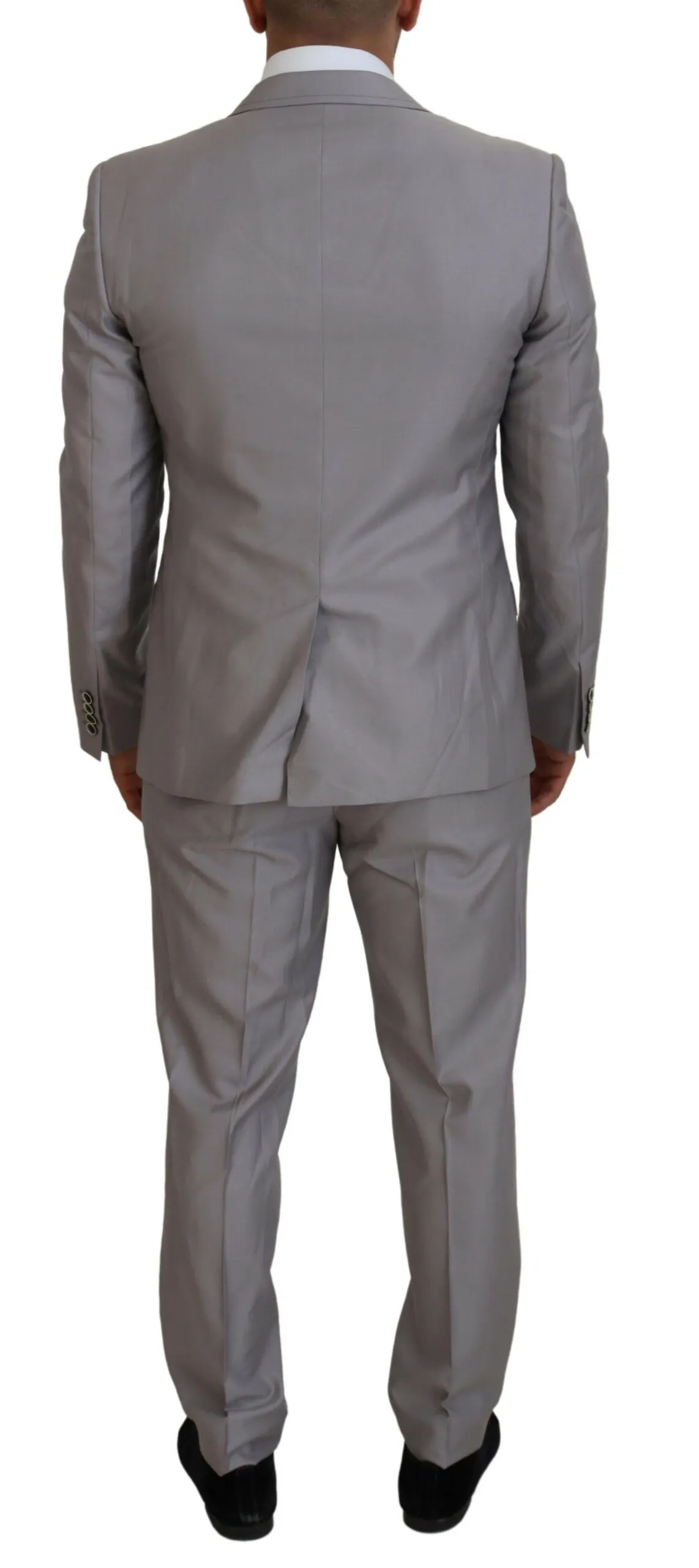 Silver Wool Silk 3 Piece Slim Fit Suit