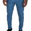 Blue Cotton Silk Trousers Chinos Pants