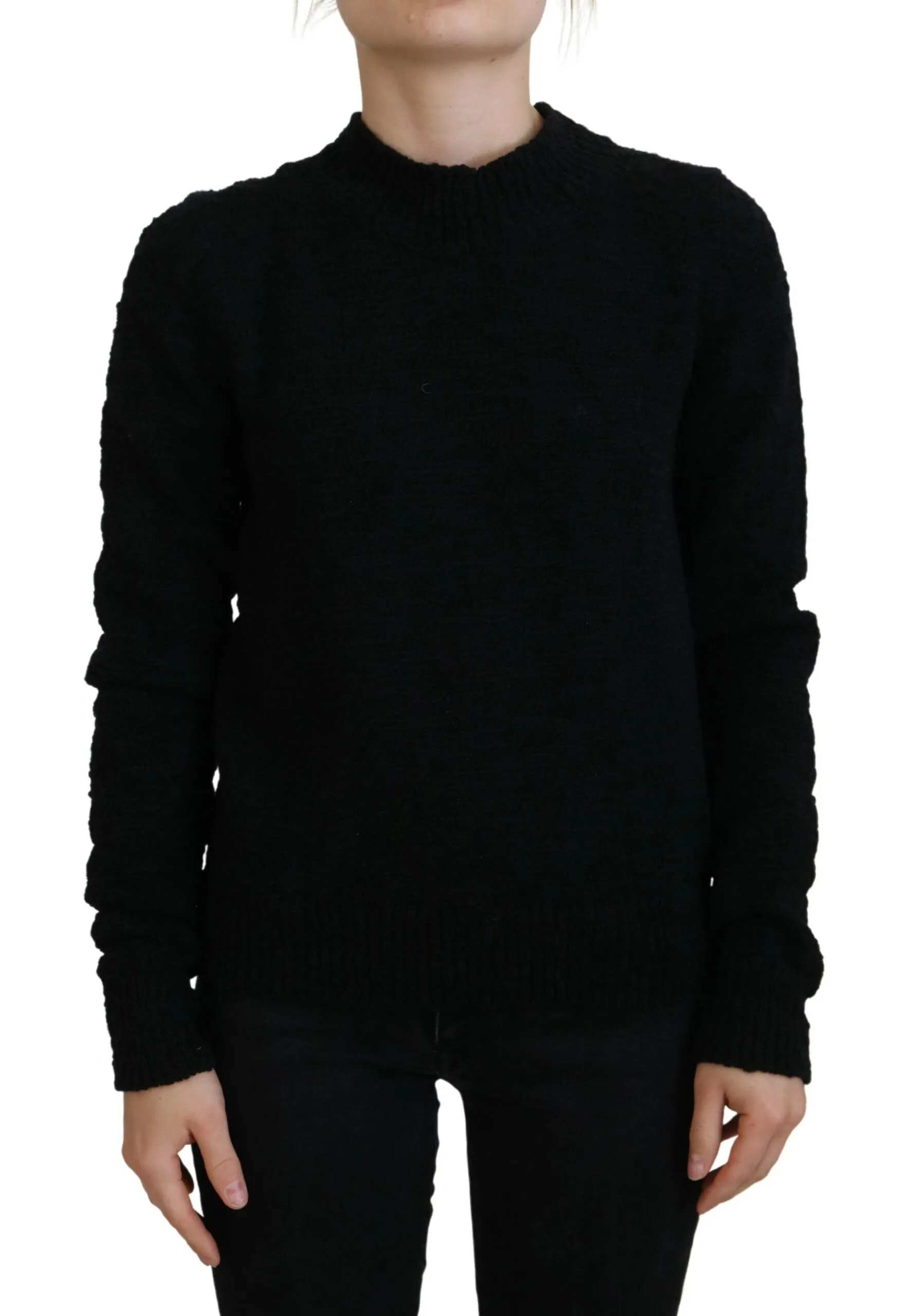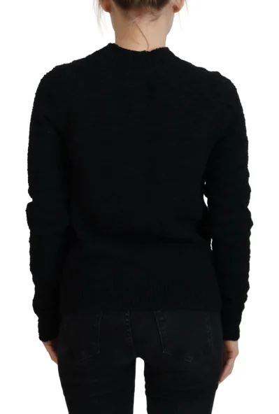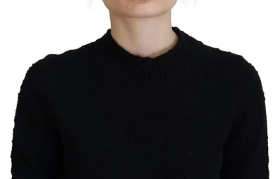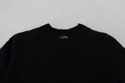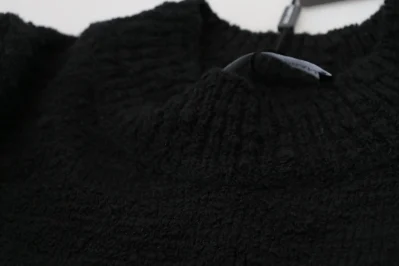 Black Wool Knit Crewneck Pullover Sweater