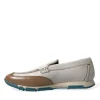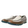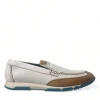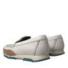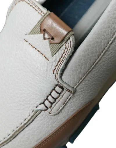 White Brown Leather Slip On Men Moccasin Shoes