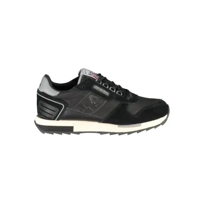Step up your style with these Napapijri sports shoes, perfect for making a statement while keeping things casual. Designed with a sleek black color scheme and enhanced with bold contrast laces and detailing, these sneakers are sure to turn heads. The inclusion of a secondary lace option allows you to customize your look to fit any occasion. A prominent Napapijri logo adds a stamp of high-end fashion to these versatile kicks.