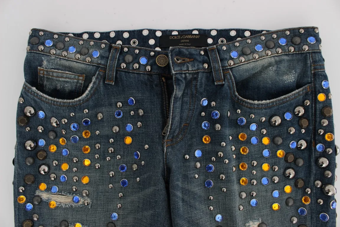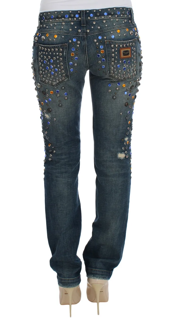 Gorgeous brand new with tags, 100% Authentic Dolce & Gabbana blue wash crystal studded embellished enchanted Sicily jeans. This item comes from the exclusive MainLine Dolce & Gabbana Collection.