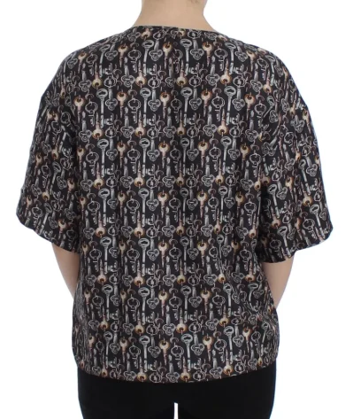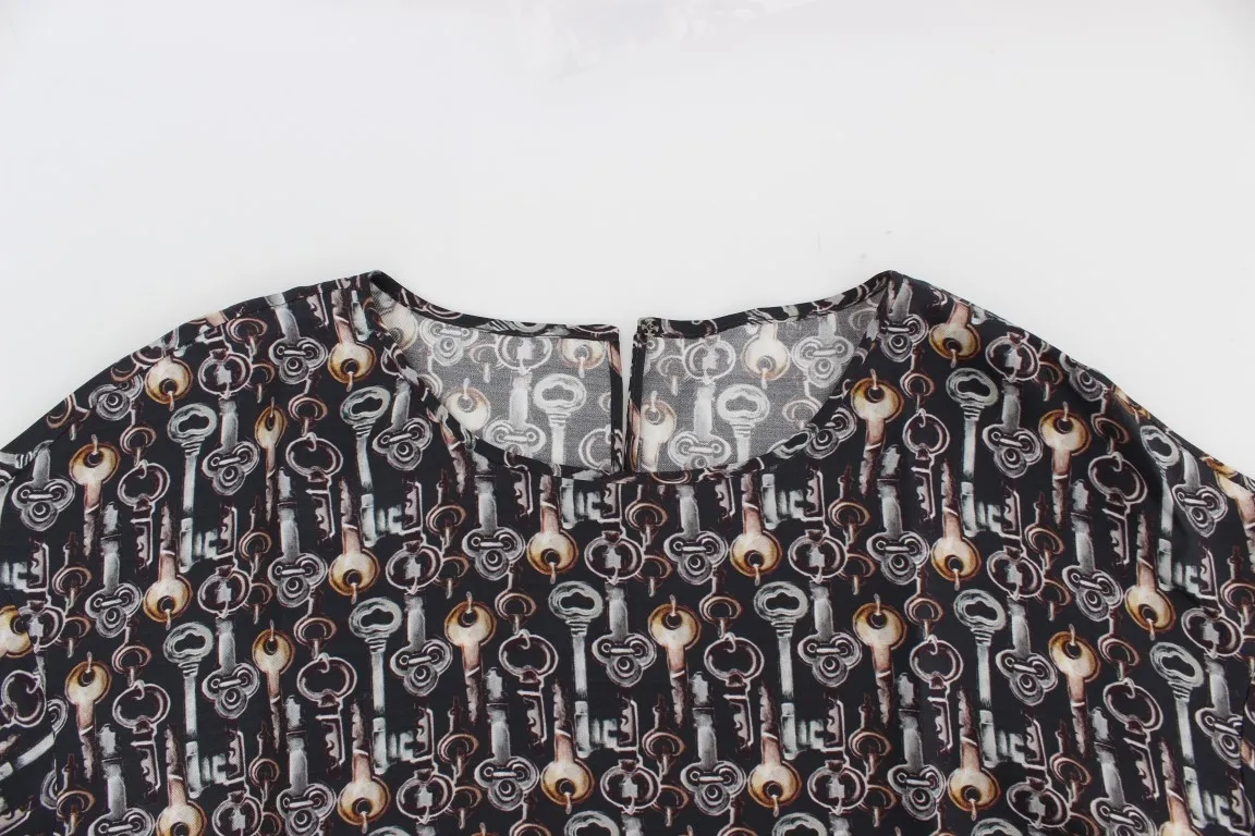 Gorgeous brand new with tags, 100% Authentic DOLCE & GABBANA gray silk blouse top with medieval Keys print. This item comes from the exclusive MainLine Dolce & Gabbana Collection.