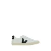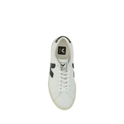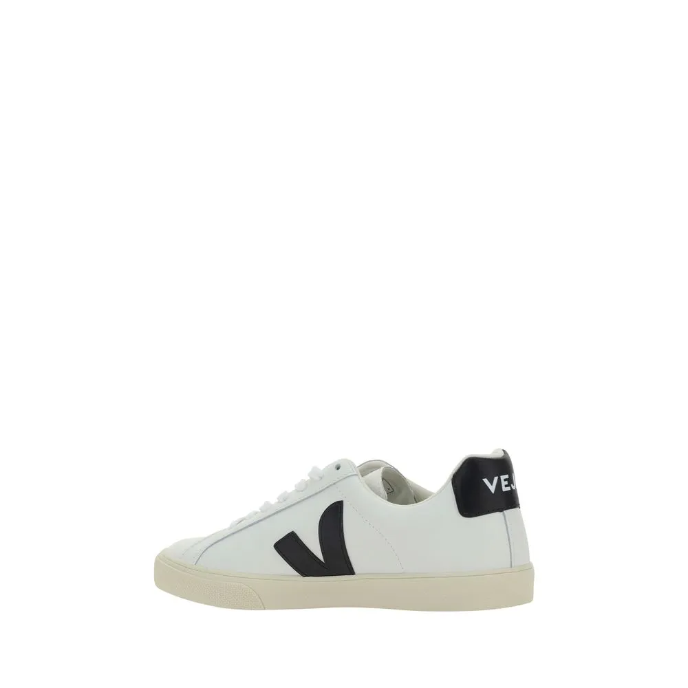 Calfskin Esplar Sneakers by Veja, round toe, front lace-up closure, contrasting applique brand iconic logo patch on side panel, embroidered brand signature label on front tongue, contrasting brand signature patch on heel.