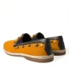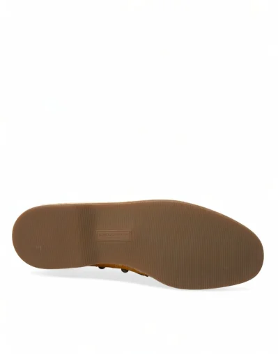 Orange Linen Leather Studded Loafers Shoes